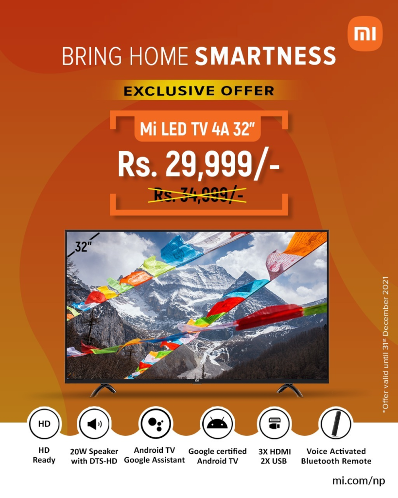 Nepal’s Smartest Android TV HD-Ready display, cinematic quality sound, multiple ports, leading performance. Along with, Along with, 700000+ hours of content which was previously for Rs.34,999 is now available at just Rs.29,999. If you have been looking for a smart TV then this is your time to actually be smart. And grab the Mi LED TV 4A 32″ at the price drop. Also, please note that this offer is only valid till 31st of December. Design The Xiaomi Mi TV 4A opts for a utilitarian design and has been constructed entirely using plastic. Moreover, the unit has a noticeable girth…