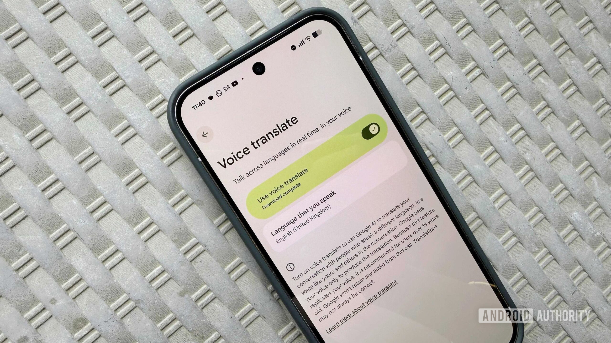 - Setup – Enable Voice Translate in the Phone app under Call Assist and download required language packs.