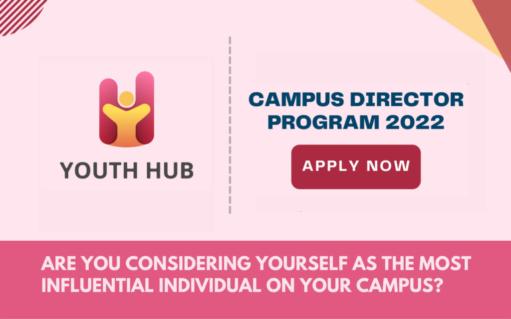 YOUTH HUB is a global, youth-led organisation, has started registration for its Campus Director Program 2022. Through this program, you will be able to get the Regional Director/ State Director or Campus Director Position. Along with this, you will also get an opportunity to join Youth Hub as an intern.